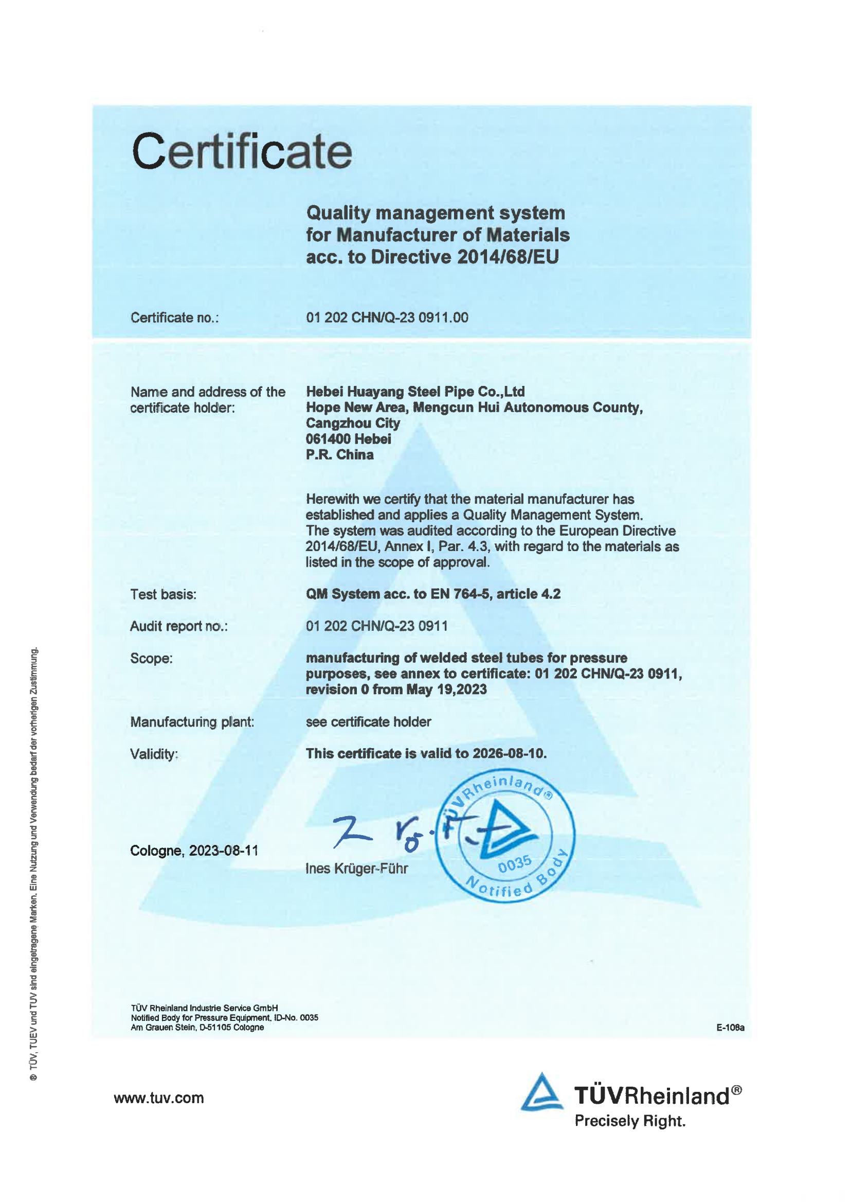 公司現(xiàn)有17條新型的自動化鋼管生產(chǎn)線,包括Φ73-660.4高頻直縫焊鋼管生產(chǎn)線14條、Φ406.4-Φ1422.4直縫雙面埋弧焊鋼管生產(chǎn)線3條,并配備有一條防腐生產(chǎn)線,可進(jìn)行3PE、2PE、FBE、2PP、3PP防腐處理,同時還可提供鋼管深加工服務(wù)。公司擁有先進(jìn)的理化實驗室,可承擔(dān)鋼管的各項物理及化學(xué)檢測與試驗。公司先后取得了ISO9001質(zhì)量管理體系認(rèn)證、ISO14001環(huán)境管理體系認(rèn)證、ISO45001職業(yè)健康安全管理體系認(rèn)證、特種設(shè)備制造許可證、API5L和API2B認(rèn)證證書、歐盟CE認(rèn)證、俄羅斯GOST認(rèn)證、中海油入網(wǎng)證、安全生產(chǎn)標(biāo)準(zhǔn)化二級企業(yè)等標(biāo)準(zhǔn)質(zhì)量體系認(rèn)證。